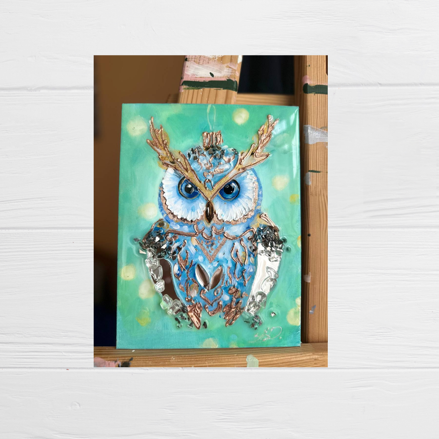 Tekstūrinis paveikslas „Pelėda“ (18×23 cm)