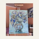 Tekstūrinis paveikslas „Mėlyni irisai“. Gėlių serija. (40x 50cm).